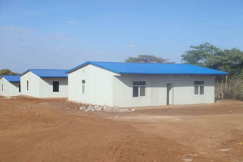 埃塞俄比亚公路改造工程项目大临设施材料陆续抵场后,项目部全体成员打破工种专业界线,齐心协力日夜奋战,顺利完成办公室和员工宿舍建设,包括餐厅、淋浴房、篮球场、足球场、员工娱乐室等。迅速实现了项目部从当地狭小租房搬入自己营地的这一目标,项目员工在埃塞终于有了自己的家园。