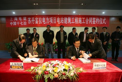出席签约仪式的有上海电力建设有限公司副总经理沈刚毅,上海电力安装第一工程公司党委书记、副总经理史美德,副总经理沙云峰、戚华山,海外分公司副经理金志刚,特邀嘉宾华东送变电工程公司总经理汪胡根、副总经理陶勇、海外分公司经理王世久,中国十七冶集团总经理喻世功、总工程师尹万云、总经理助理曹永忠,十七冶水泥工程技术公司副经理胡文奎。