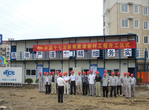 713上午,中国十七冶承建的蚌埠戴湖新村工程举行开工仪式,蚌埠经济开发区投资有限公司有关领导、安徽国汉建设监理咨询有限公司监理、城建公司副经理赵俊华以及十七冶在蚌所有员工参加了开工仪式。