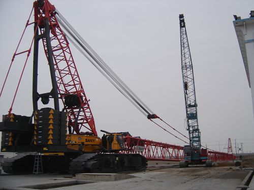 1128,一台大型“金刚”——具有国内先进水平的650吨履带吊在十七冶江苏灌云风电安装现场组装、调试、验收合格。