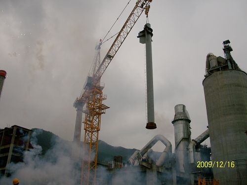 由十七冶水泥工程公司承建的江西弋阳海螺5000t/d熟料生产线机电安装项目,其关键子项窑尾塔架工程于12161558分顺利开始吊装。