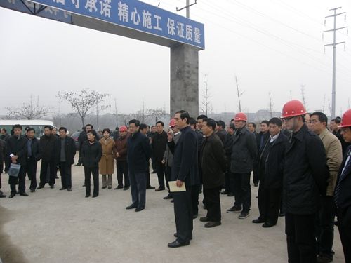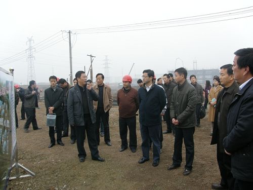 市五大班子领导在施工现场听取了业主的工程情况汇报,察看了施工现场,对工程进展表示满意。