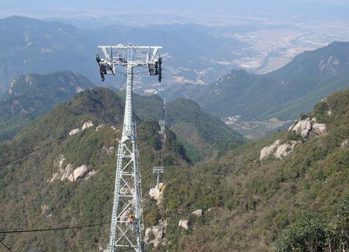 九华山花台索道的安装工程是十七冶机电公司继完成黄山云谷索道工程以后又一次承担这种国际上最先进的循环脱挂抱索器吊厢式索道工程,也是十七冶到目前为止完成的最长的一条旅游观光索道。