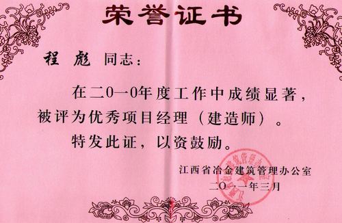日前,江西省冶金建设管理局召开2011年江西冶金建设工作会议。江西分公司及分公司经理程彪分别荣获“先进施工企业”和“优秀项目经理”称号,受到大会表彰。