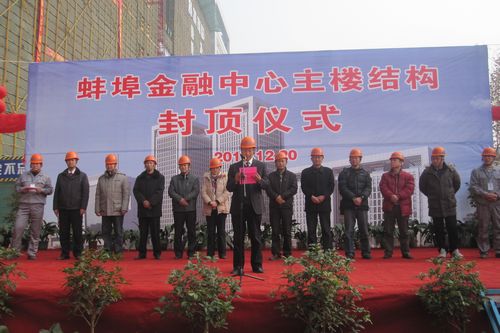 1220上午,十七冶城建工程技术公司承建的蚌埠金融中心项目主楼结构顺利封顶。蚌埠经济开发区管理委员会、蚌埠市建设工程管理局、蚌埠经济开发区投资有限公司、蚌埠市科技创业投资有限公司、安徽建设监理有限公司、安徽人和项目管理有限公司、十七冶城建公司等31家单位前往祝贺。
