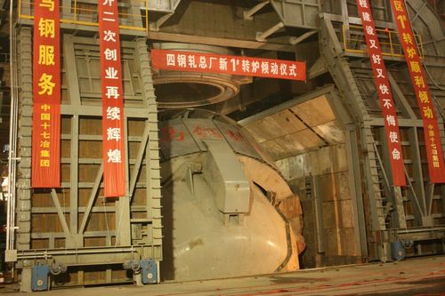 3月23日下午1点58分,由十七冶冶金工程技术公司承建的马钢新区四钢轧1号300t转炉顺利倾动,马钢集团公司副总经理高海建、四钢轧总厂厂长蒋育翔,中国十七冶集团总经理助理王青山、冶金工程技术公司经理范文刚以及马钢项目部负责人共同见证了这一重要时刻。 该转炉为目前我国国内出钢量最大的转炉,其炉壳重260t,托圈重320t,倾动装置重170t。自2011年2月21日开工以来,马钢新区四钢轧项目部发扬“高效严谨、精细务实”的企业作风,克服了施工与生产交叉、地下情况复杂、设备供货滞后等诸多不利因素的影响,提前两个月完成了1号转炉顺利倾动这一重大节点,为后续工程奠定了坚实的基础。 高海建副总经理在倾动仪式上说,感谢十七冶人为之付出的努力,将这样高难度的任务完成的这么出色,再一次证明了十七冶是一支有战斗力的队伍。