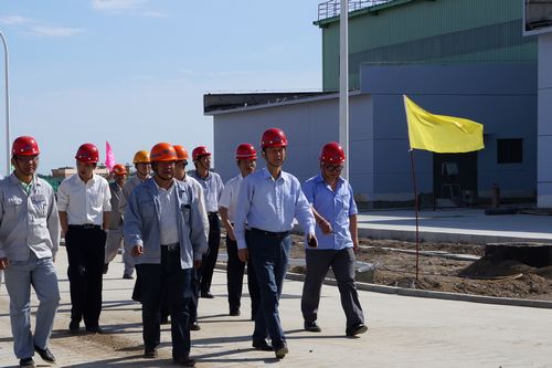 在施工现场,尹万云总工程师查看了管加工工程空压站、生产辅助楼基础设施和管加工车间等子项,并详细了解了单机调试和热负荷试车准备工作情况,对项目部所作的工作给予了充分的肯定。