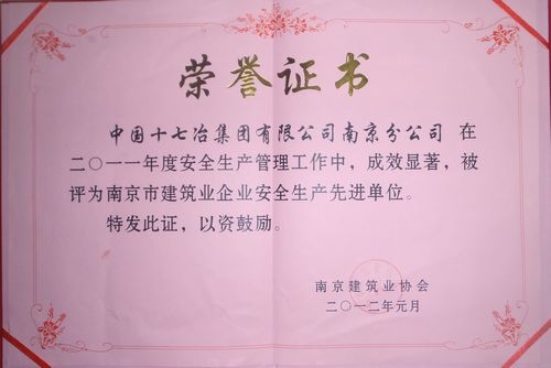 南京分公司获“南京市建筑企业安全生产先进单位”称号