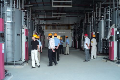 蒋为民总经理重点查看了U1区域和U2区域工程进展情况。在看到U1区域公辅电气室、锅炉房、IW冷却塔系统、空压机站等子项已安装调试结束,U2区域正在进行土建防腐、各子项管道正在施工后,蒋为民总经理充分肯定了十七冶为越南CSVC公辅设施项目所做努力,希望继续在质量上精益求精,确保工期,早日实现竣工投产。