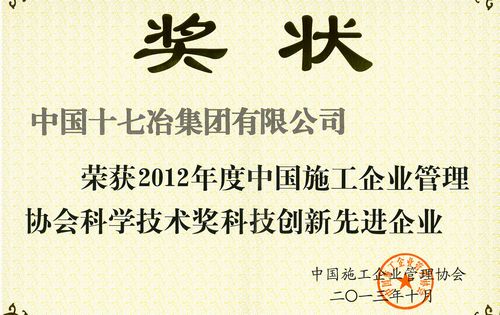 近日,从中国施工企业管理协会2013年科技工作大会暨颁奖会上获悉,中国十七冶集团荣获“2012年度中国施工企业管理协会科学技术奖技术创新先进企业”称号等4项科学技术奖。
