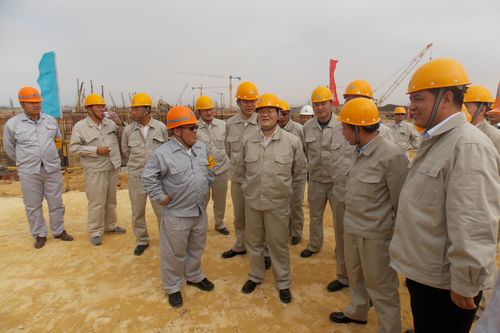 徐乐江董事长等领导一下车,即和大家亲切握手,送上节日的问候,并听取了十七冶总经理助理、炼钢工程项目经理钟华彪的前期工作汇报和下一步的主要工程节点安排,尤其对十七冶抢抓湛江旱季时机,全力主攻土建工程出地面的工作安排非常满意,频频赞许。接着,徐乐江董事长勉励大家抓好钢结构安装和安全管理工作,确保炼钢工程建设取得胜利。