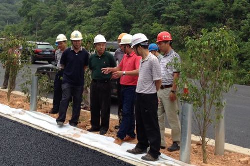 刘可总经理一行视察了路面一标沥青路面施工作业现场,仔细察看了一标段的沥青摊铺作业,在听取项目经理李军对沥青路面施工工艺及施工控制要点汇报后,充分肯定了路面一标项目部在工程施工质量、安全、进度及文明施工、标准化建设等各方面均居当前四个标段中领先的好成绩,赞扬了十七冶在广西高速公路建设中为广西壮乡人民作出的贡献。