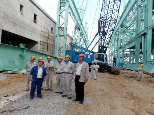 宝钢湛江钢铁有限公司总经理盛更红,宝钢湛江钢铁有限公司副总指挥刘代德,中国十七冶集团总经理助理王青山,总经理助理、广东十七冶建设有限公司总经理钟华彪等领导亲临施工现场观摩首台行车起吊的全过程。