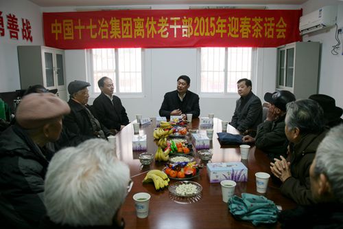 会上,喻世功董事长代表公司给在座的离休老干部们拜个早年,恭祝他们身体健康、阖家幸福,并介绍了中国十七冶集团2014年主要业绩,公司获得了房建总承包特级资质和行业设计甲级资质,营业收入首次突破100亿元、市场营销首次突破230亿元,在工程施工领域也取得了多项历史性突破,取得了十七冶历史上最好成绩。喻世功董事长表示,大家都是十七冶的老领导,十七冶是离休老干部们的家,公司将会一如既往尽力关心、帮助离休老干部们,也希望老领导们继续关心公司,为公司发展建言献策。