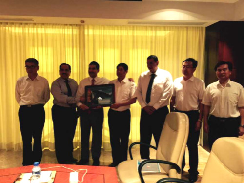 喻世功董事长对Tuiki王子一行的来访表示欢迎,喻世功董事长详细介绍了中国十七冶集团的国内外项目发展经营现状以及近期公司顺利获得“双特双甲”资质。