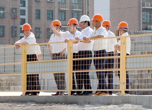 在上坊经济适用房一期Ⅰ、Ⅱ标段项目施工现场,刘安义总经理一行认真查看了施工现场的各项工作情况,并充分肯定了项目部所做的各项工作,要求大家再接再厉,克服困难,一如既往地干好在手工程;继续保持良好的安全文明施工环境;做好各项基础管理工作,同时加强与各协作单位的合作。