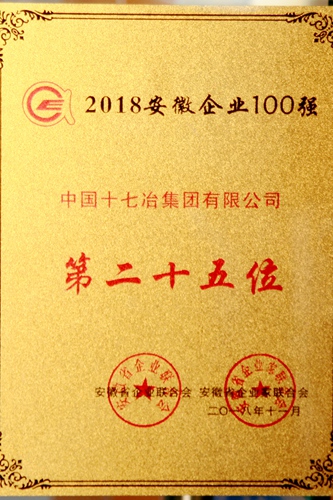 11月10日,安徽企业高质量发展论坛暨2018安徽百强企业发布会在合肥举行,中国十七冶集团位列第二十五名,在去年的基础上又前进三位公司还于11月7日荣获中国企业联合会和中国企业家协会联合颁发的“企业信用评价AAA级信誉企业”荣誉。