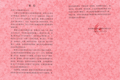 贵州紫望高速公路建设公司向十七冶致贺信