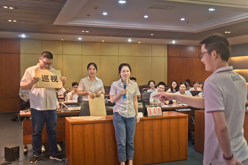 在知识竞赛的必答题与抢答题环节,四支参赛队伍都表现出色,水平旗鼓相当。在“你比划我来猜”环节,每队参赛选手将语言表达、综合分析、行为模仿、团队意识能力充分展现出来,把平时在电视、公众号、学习强国等媒体上看到的党风廉政热词展现在大家面前。