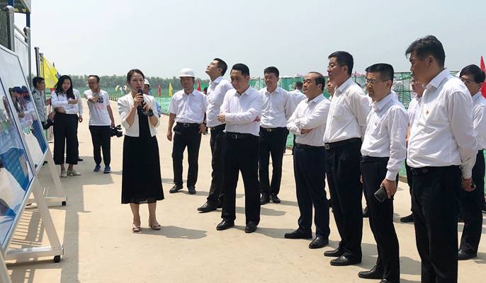 7月28日,济南新旧动能转换先行区管委会主任李国祥带领近百名观摩团成员到中国十七冶集团承建的济南绿色建设国际产业园基础设施一期工程参观。