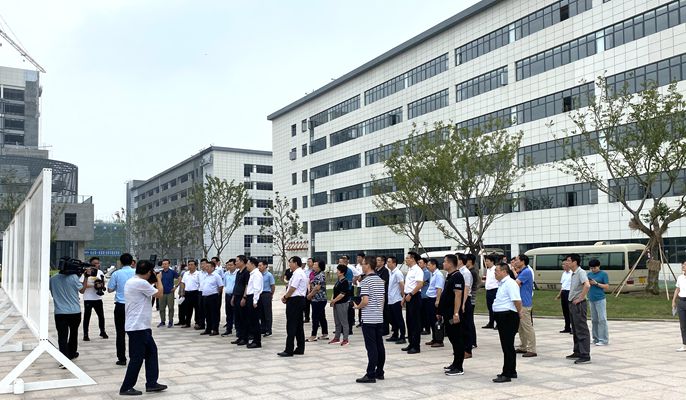 在丰县智能终端产业园项目,娄海书记为考察团介绍了两项目对丰县智能终端产业发展的意义。项目负责人就十七冶建设实力、两项目基本概况、建设进度、技术质量、安全环保工作进行了汇报。在实地查看两项目、听取介绍并全方位了解后,考察团对于中国十七冶的央企风采、施工建设实力和技术质量水平给予了充分肯定,一致认为两项目建设成果充分体现出中国十七冶的央企责任担当和实力。