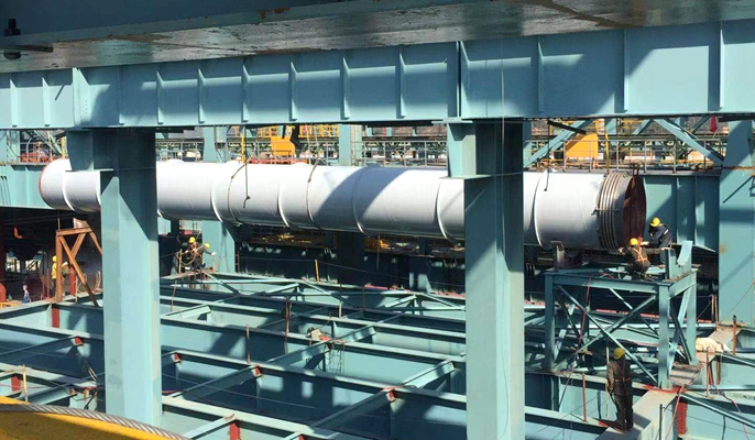 宝钢德盛项目AOD加料跨除尘管道吊装就位