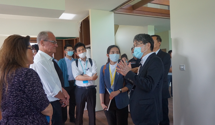 考察嘉宾包括联合国工业发展组织投资和技术促进办公室(中国北京)专员周洋、日本创新株式会社北京事务所所长韩岩、阪和商贸(青岛)有限公司总经理饭冢哲、东瑞盛世利(上海)商业保利有限公司营业部董事兼总经理森田泰侧、副经理潘良、德勤日本总监陈真、双日(中国)有限公司总经理宫部敏明等企业、机构负责人。
