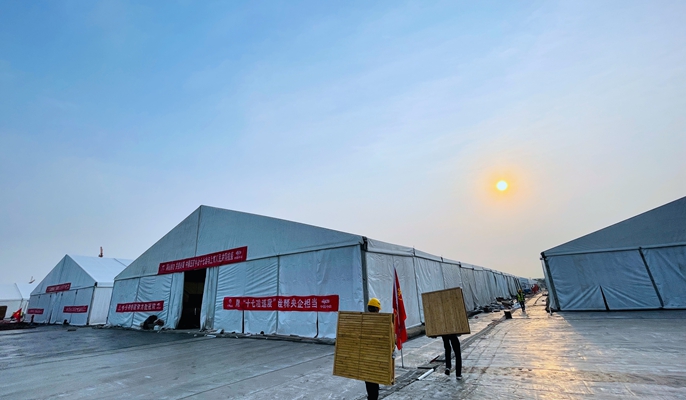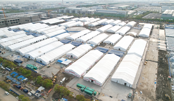 虽然因为疫情按下上海市的“慢行键”,但方舱建设却跑出了十七冶人的“加速度”。截至19日下午16时,所有方舱基础已全部浇筑完毕,总计约2万平方米,浇筑总量4000立方米;厂区道路混凝土浇筑约2700平方米,浇筑量约1400立方米;混凝土浇筑总计约2.7万平方米,浇筑总量约5400立方米;现场方舱大棚骨架、篷布搭设全部结束,管道施工全面贯通,主干线给排水及消防管道全部安装完成;方舱PVC地板安装、床位铺设全部完成,洗漱淋浴区设备安装完成;方舱照明全部安装完成,插座及强弱电已全部完成。