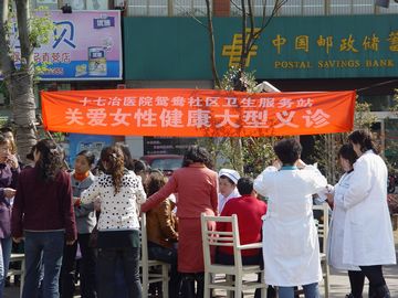 47,十七冶医院鸳鸯社区卫生服务站组织妇产科十多位专家医生,在咏春公寓广场前开展关爱女性健康街头义诊活动,为广大女同胞进行常见病、多发病的健康咨询和诊治,并发放了女性健康宣传资料,受到了女同胞们的欢迎。
