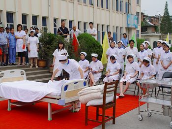 下午3点,院董事长、党委书记施松林宣布比赛开始,院长王仲恺致词,建设公司组织文化部部长韩伟群作了讲话。来自临床、门诊的20名参赛选手,分别进行了心肺复苏术、铺备用床的实际操作比赛。比赛中,每位选手都以认真、严谨的态度对待每一个比赛环节,严格按操作规程,一丝不苟进行比赛。经过近两个小时的竞赛,整个竞赛活动获得了圆满成功。