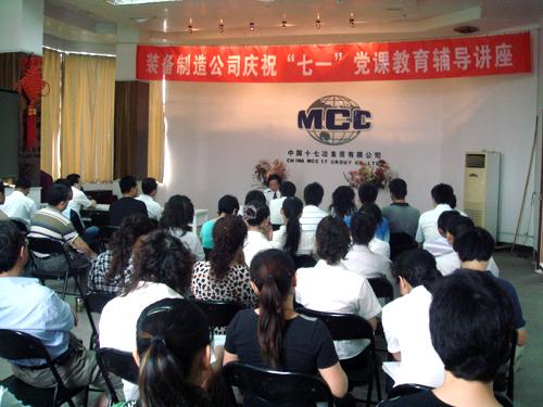 在党课教育辅导讲座上,公司副经理、党委副书记陈夕潮传达了十七冶集团公司党委关于开展庆祝“七一”系列活动的通知精神,并对装备制造公司各厂、机关、项目部党支部开展特色活动进行了部署。