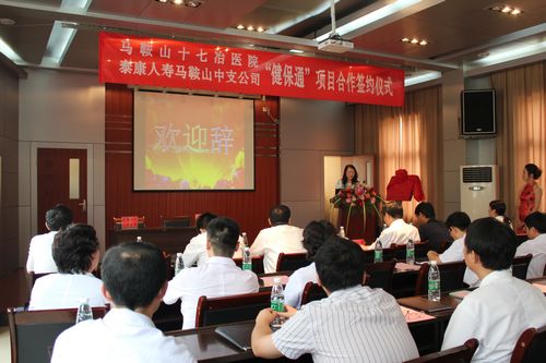 722下午,十七冶医院与泰康人寿马鞍山中支公司在医院电教室举行“健保通”项目合作签约揭牌仪式。十七冶医院成为马鞍山首家该项目签约医院。