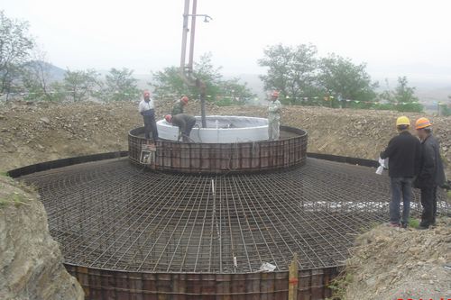 该工程自46破土动工以来,一直受征地等外部因素的困扰,影响了施工进度。为保证工期和施工质量,项目部积极创造条件,科学组织,优化资源配置,成功完成首台基础浇筑。