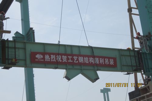 731上午1058分,新疆八一钢铁150t转炉工程工艺钢结构吊装成功。吊装仪式上,新疆八一钢铁150t转炉工程副总指挥朱君致词祝贺,集团公司项目监管部副部长赵峰、BSEE、监理、宝钢钢构等单位相关领导参加了仪式。