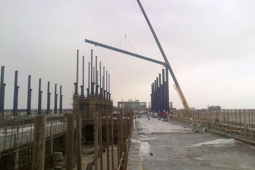 青海盐湖电解镁车间主厂房屋架梁开始吊装