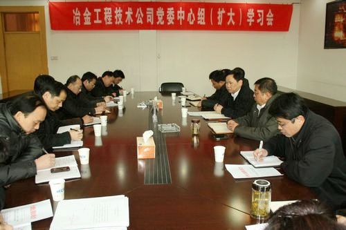 34上午,冶金工程技术公司党委召开中心组(扩大)学习会,公司领导班子成员、机关各部室负责人参加了会议。