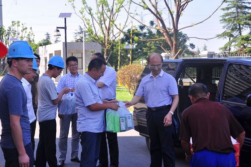 日前,南京市江宁区住建局副局长朱光一行顶着烈日,来到由中国十七冶集团承建的江宁公共租赁房施工现场,为项目部管理人员及一线作业人员送来防暑降温用品,给奋战在炎炎烈日下的施工人员送去丝丝清凉,并亲切慰问了在酷热高温下坚守岗位的一线员工。