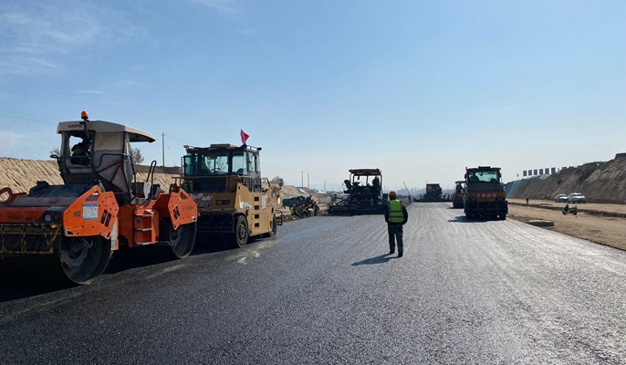 兰州榆中科创大道项目路面沥青下面层试验段开始施工