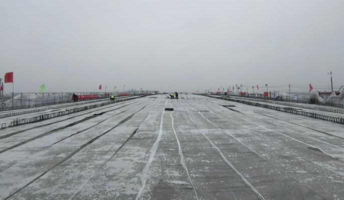 面对工期紧、任务重、阴雨绵绵、天气寒冷等诸多困难,项目部精心组织,提前策划,统筹安排,积极开展劳动竞赛活动,迅速掀起岁末年初施工大干热潮。抢抓晴好天气,制定合理浇筑方案,对参建施工队伍进行技术、质量、安全等方面层层交底,合理优化资源配置,强化施工过程工序,严格把控工程安全质量关。为确保浇筑工作顺利完成,全体人员昼夜坚守,分工明确,责任到人,逐一落实混凝土供应、配合比以及浇筑时间、方法、顺序、温控措施等各道工序,全身心投入桥梁施工作业,全力冲刺“3.18”大桥全线通车目标。第二联箱梁浇筑的顺利完成,为后续一、三联箱梁施工提供了条件,为大桥全线通车奠定了基础。