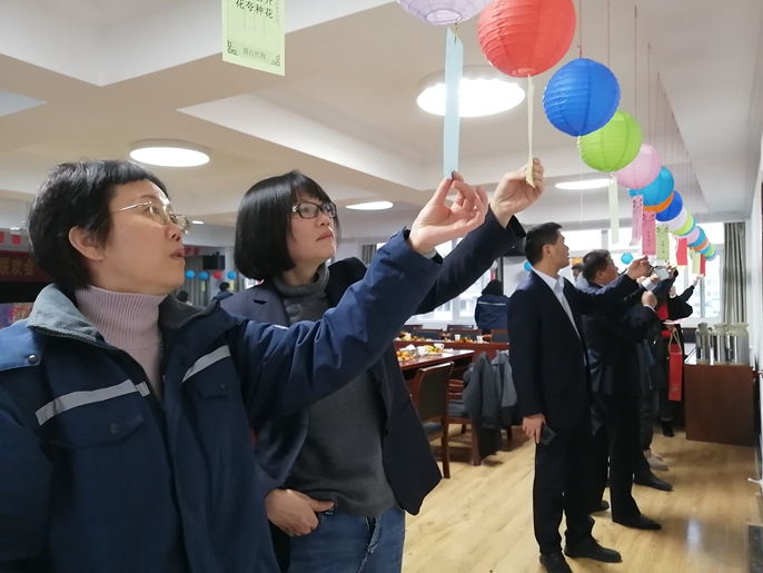 活动开始之前,分公司经理、党委书记朱广剑对一年来为分公司发展作出贡献的各级管理人员、职工及其家属致以节日的祝福和问候,对节日期间依然坚守岗位的一线员工表达感谢,分公司领导班子也纷纷上台为员工送上了新春的温馨祝福。随后联欢活动正式开始,包括“你来比划我来猜”“当仁不让”“猜灯谜”等趣味活动。在“你来比划我来猜”环节,大家自发组队,比划者或用肢体语言,或口述表达传达信息,双方配合默契,“龙腾虎跃”“鹤立鸡群”“张牙舞爪”“转型发展”等多个词语的竞猜引得人捧腹大笑;在“当仁不让”环节,选手们跟着音乐节奏抢板凳,拼时间,比速度,赢得观众阵阵喝彩;猜灯谜现场,分公司精心准备了百余条谜语,用颜色不一的灯笼将谜语条高高挂起,职工们或驻足细看,或低头思索,或互相讨论,兴致勃勃,各显其才,纷纷抢摘谜语,投入到竞猜之中。活动现场气氛热烈,大家脸上洋溢着欢乐、喜悦的笑容。