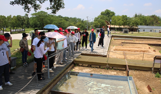 团员青年们参观了中华文明曙光阶段最具代表性的遗址之一、在中华文明起源和形成过程中具有标志性地位的凌家滩遗址,通过观看文化宣传片,聆听文物讲解,实地参观遗址等,全面认识了凌家滩遗址作为全国“百年百大考古发现”、长江下游地区新石器时代崧泽文化时期最大的中心聚落的重要意义。同时,2022年北京冬奥会奖牌背面图案设计融入了凌家滩遗址出土的双连璧元素,充分体现了凌家滩作为迄今所发现的中国史前第一个玉文化高峰的重要地位。
