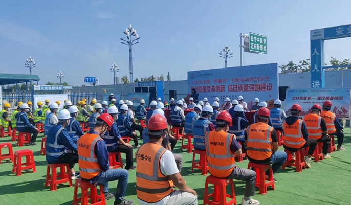 9月5日上午,安徽泗县“质量月”活动在中国十七冶南京分公司承建的泗县鹿鸣山庄安置房项目举办,活动主题为“推动质量变革创新,促进质量强国建设”。泗县住建局副局长李斌、泗县质量发展委员会主任杨兴旺,泗县质监站站长高安顺,建设单位、监理单位及十七冶南京分公司泗县片区各项目管理人员等共计80人参加。