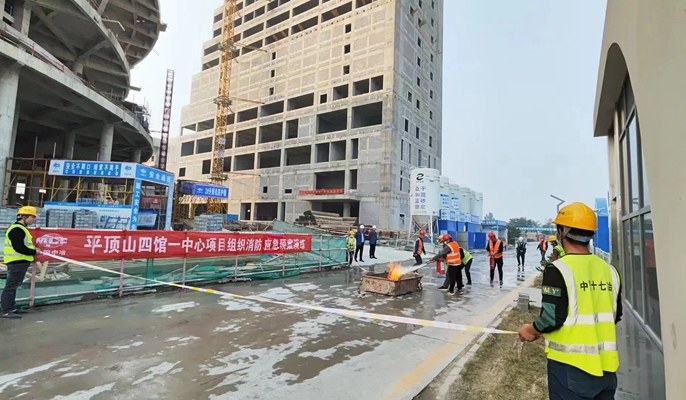 在平顶山市“四馆一中心”项目,项目团队积极开展消防应急演练活动,项目部以施工现场突发火情为模拟情景,项目人员发现险情后立即向项目应急领导小组汇报,按照应急预案的相关要求联系各应急救援小组组长,各小组立即赶到现场进行应急救援,积极沟通,组织协调,有条不紊地对突发火情进行处置。