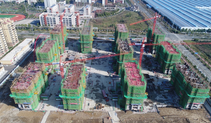 天长市新型城镇化提质升级补短板项目由产业培育设施配套用房建设工程、铜城镇产业培育设施建设工程和宿扬高速以西区域路网工程三个子项组成。产业培育设施配套用房建设工程总建面约83530.07平方米,包含11栋高层住宅楼、3栋商业建筑及室外附属配套。此次封顶单体为工程9#住宅楼,地下2层、地上11层,建筑高度32.5米,抗震设防烈度为7度,结构形式为框架剪力墙结构。