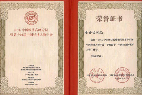 喻世功董事长荣获“中国经济新领军人物”称号