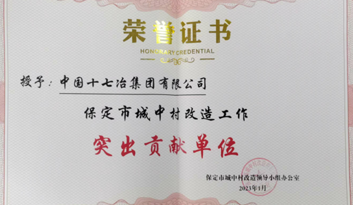 近日,保定市城中村改造领导小组办公室授予中国十七冶集团“突出贡献单位”称号并致表扬信,对房屋分公司保定市主城区城中村连片开发ABO项目二标段团队,为确保一期工程完美交付、二期工程高效推进所作努力予以高度赞扬与衷心感谢。