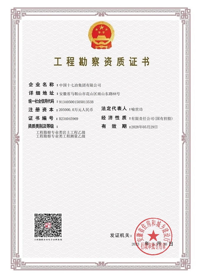 中国十七冶获工程勘察两项乙级资质
