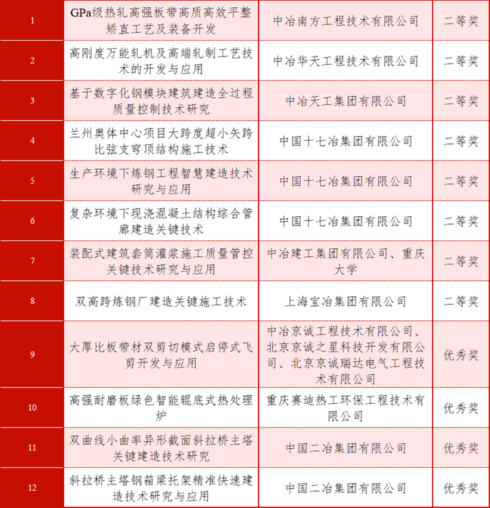 中国十七冶3项成果获中国质量技术领域最高奖