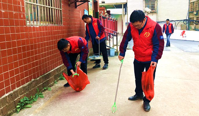 党员同志带领其他同志,身穿红马甲,拿起铁钳、扫把等工具,从登岸小学开始,清扫路面垃圾、处理干枯树枝、清理卫生死角、搬运乱推乱放杂物等,同时,对周边的居民进行宣传,倡导垃圾分类、爱护环境卫生。参与活动的同志人人干劲十足,个个奋勇争先,充分发扬志愿服务精神,现场呈现一片热火朝天的景象。经过四个小时的努力,小区卫生环境得到了进一步改善,受到了周围住户的好评,被路过的学生亲切地称为雷锋小队。