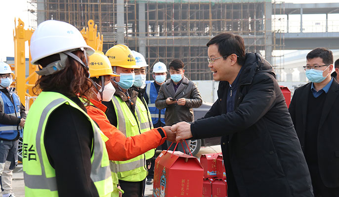 2月11日,西安国际港务区党工委副书记苗吉到中国十七冶集团陕西分公司承建的中冶集团西北区域总部项目,慰问了春节期间仍坚守岗位的一线员工。